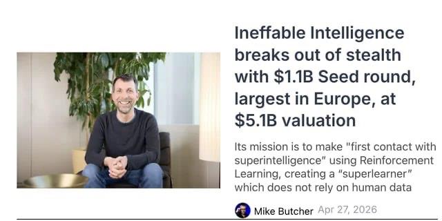 (បរទេស)៖ Ineffable Intelligence ដែលជាមន្ទីរពិសោធន៍ AI របស់អង់គ្លេស បង្កើតឡើងត្រឹមតែប៉ុន្មានខែប៉ុណ្ណោះដោយលោក David Silver អតីតអ្នកស្រាវជ្រាវនៅ DeepMind និងកៀរគរថវិកាបានចំនួន ១.១ ប៊ីលានដុល្លារ ក្នុងតម្លៃវាយតម្លៃក្រុមហ៊ុនដល់ទៅ ៥.១ ពាន់លានដុល្លារ ដើម្បីចូលរួមក្នុងយុទ្ធនាការបង្កើតម៉ូដែល AI ជំនាន់ថ្មី ដែលអាចមានសមត្ថភាពខ្លាំងជាងម៉ូដែលភាសាធំៗ (LLMs) បច្ចុប្បន្ន។