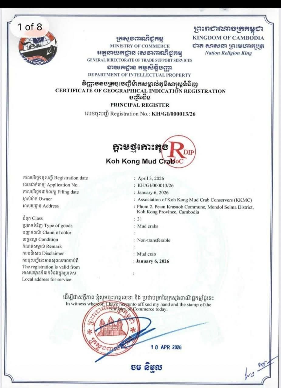 បន្ទាប់ពីបានពិនិត្យឃើញថា ពាក្យស្នើសុំចុះបញ្ជីមានភាពត្រឹមត្រូវតាមលក្ខខណ្ឌច្បាប់ ក្រសួងពាណិជ្ជកម្មត្រូវចុះបញ្ជី និងចេញវិញ្ញាបនបត្រជូនអ្នកដាក់ពាក្យ ស្របតាមបញ្ញត្តិមាត្រា ១២ នៃច្បាប់ស្តីពីម៉ាកសម្គាល់ភូមិសាស្ត្រទំនិញ ។ ជាឧទាហរណ៍៖ ក្រសួងពាណិជ្ជកម្មបានសម្រេចចេញវិញ្ញាបនបត្រចុះបញ្ជីម៉ាកសម្គាល់ភូមិសាស្ត្រទំនិញសម្រាប់ "ក្តាមថ្មកោះកុង" កាលពីថ្ងៃទី១០ ខែមេសា ឆ្នាំ២០២៦ ជូនដល់អ្នកដាក់ពាក្យសុំ ដែលបានបំពេញបែបបទ និងនីតិវិធីត្រឹមត្រូវតាមច្បាប់កំណត់ ។